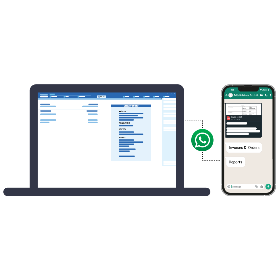 - Share invoices, orders, reports, and any other document directly from TallyPrime to WhatsApp